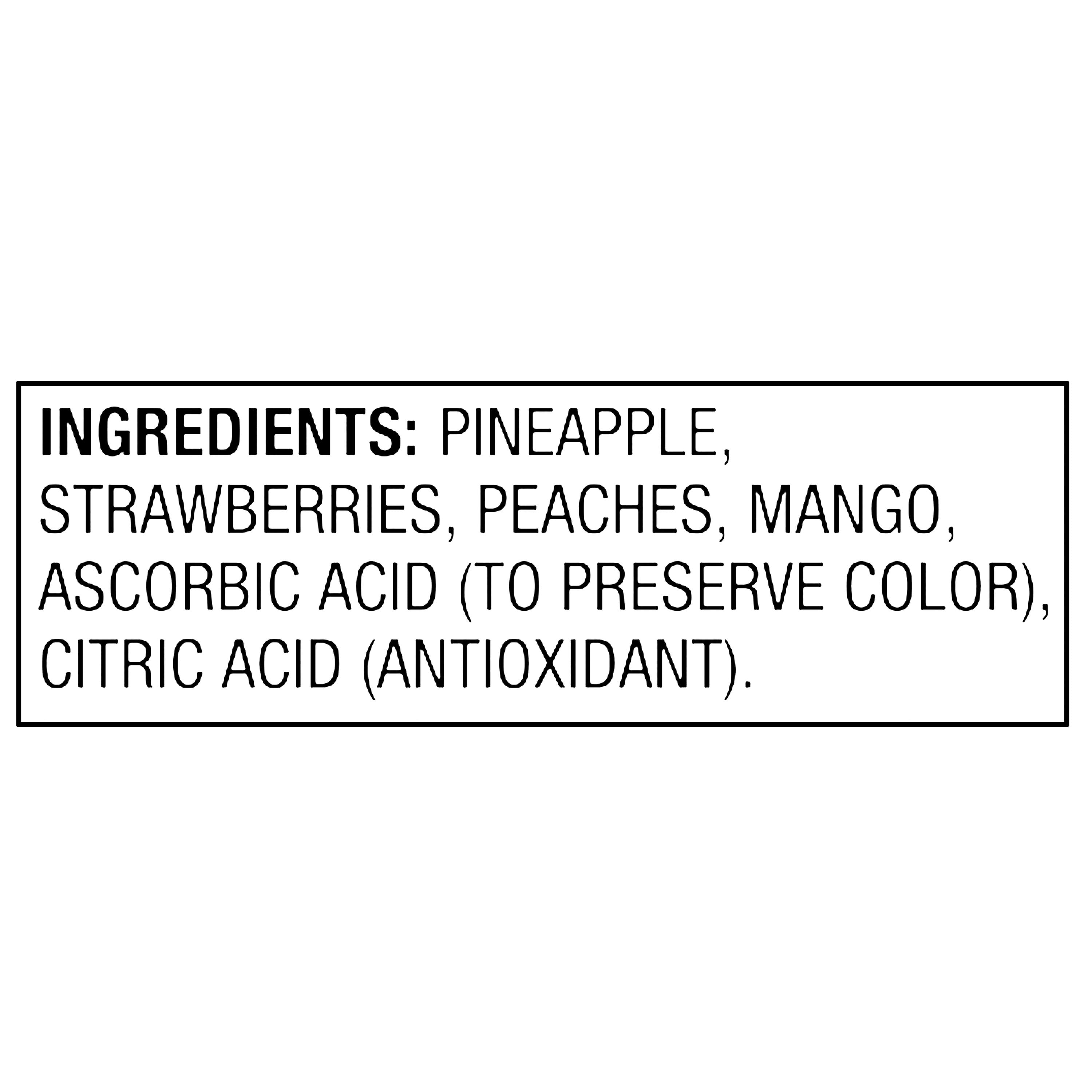 Great Value Mixed Fruit is your go-to mix for a refreshing treat. Perfect on a warm summer day, this mix of cut pineapple, strawberries, peaches, and mango can be made into a lovely punch to enjoy poolside with the family, or can be blended with ice into a delightful smoothie to sip on as you venture out for a fun walk through town. High in vitamin C, this four-pound box of vibrant fruits makes for a wonderful snack that helps keep you focused and on your toes. With 13 servings per container, the Great Value Mixed Fruit is your number one choice in a delectable treat to serve up to your family and friends.