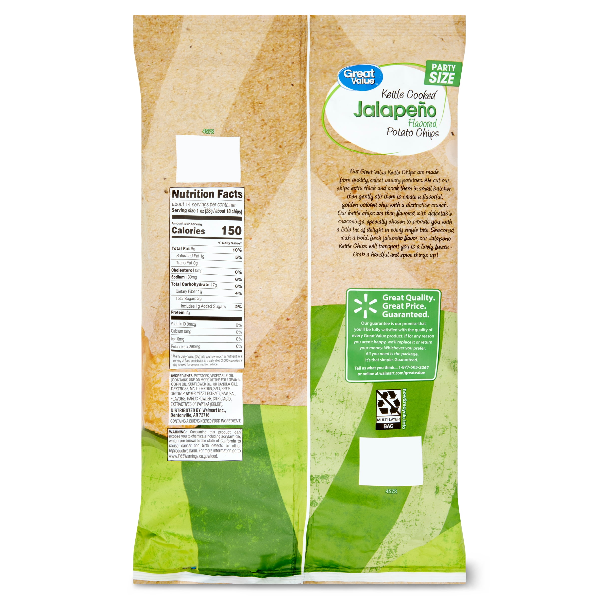 Great Value Party Size Kettle Cooked Jalapeno Flavor Potato Chips, 13.5 oz: