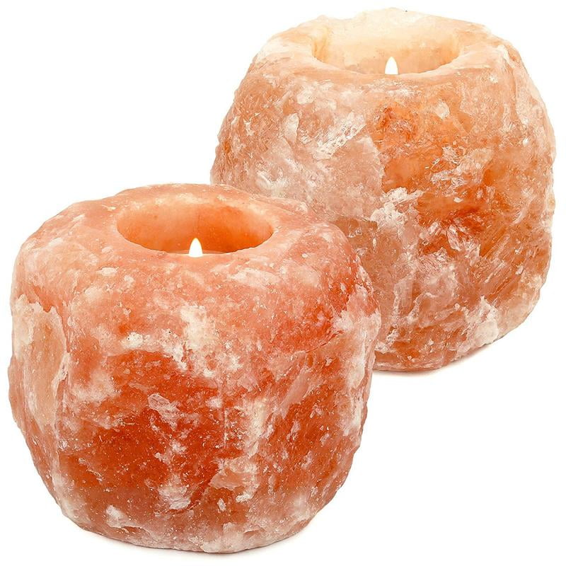 Greenco Himalayan Crystal Salt Tealight Candle Holder (2-Pack)