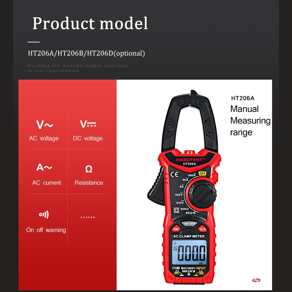 The new of high-performance digital clamp meter makes your work easier, more efficient and safer. Measurable AC/DC voltage, AC/DC current, frequency, duty cycle, resistance, temperature, diode, continuity, NCV, etc.