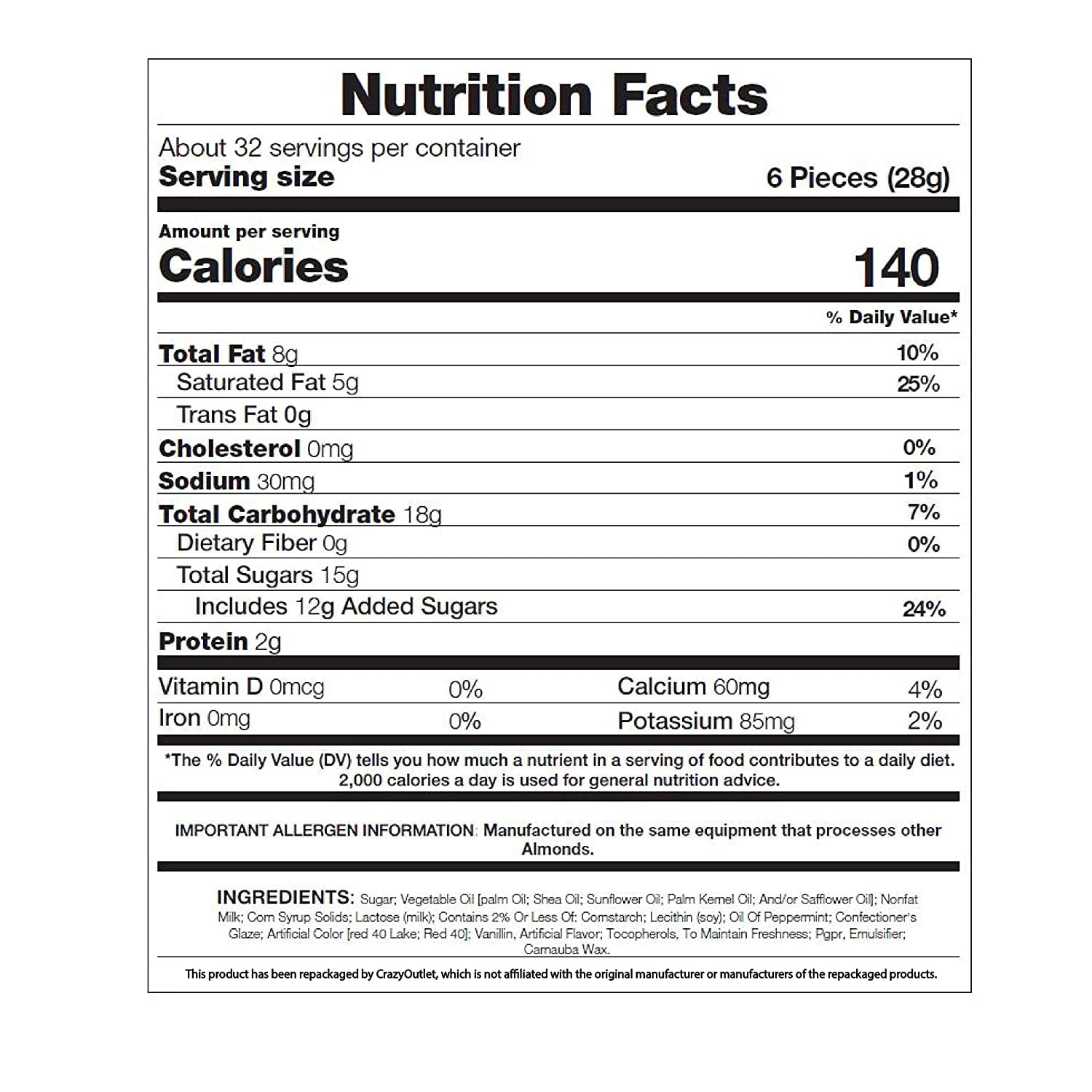 SATISFY YOUR SWEET TOOTH: HERSHEY’S KISSES Candy Cane Mint candies have a sweet white creme flavor, with a refreshing hint of peppermint FESTIVE WRAPPING: These HERSHEY’S KISSES are wrapped in vibrant and decorative foils, perfect for any holidays PERFECT FOR ALL OCCASIONS: This candy is great for any occasion, like birthdays, holidays, parties, sweet tables, office bowl, special events, movie nights, and much more FRESHNESS GUARANTEED: All products sold by CrazyOutlet are guaranteed to be fresh and filled with flavor, always leaving you wanting more BULK CANDY: Pack of 2 Pounds. – Approximately 200 pieces per orderSATISFY YOUR SWEET TOOTH: HERSHEY’S KISSES Candy Cane Mint candies have a sweet white creme flavor, with a refreshing hint of peppermint FESTIVE WRAPPING: These HERSHEY’S KISSES are wrapped in vibrant and decorative foils, perfect for any holidays PERFECT FOR ALL OCCASIONS: This candy is great for a