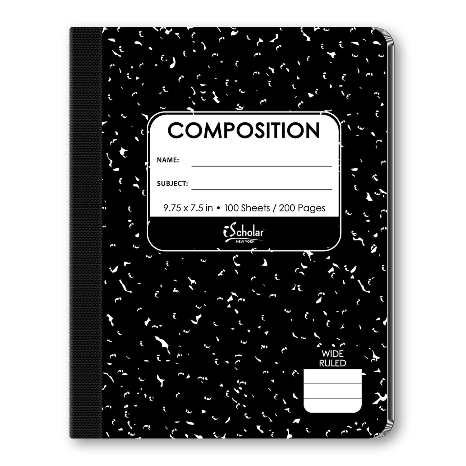 iScholar’s composition notebook is a staple for every student, office and home. One hundred sheets of wide ruled bright white paper. Composition book is standard 9.75 x 7.5 inches & features thick heavy board, sewn pages and cloth tape on the spine. There is even a class schedule, contacts list, multiplication table and conversion tables on the inside covers. Perfect for school, work, or for every day use. iScholar is a leading manufacturer of school, home and office paper supplies. • Pack of 6 black & white composition noteboooks • Durable cover with sewn pages • 100 wide ruled sheets (200 pages) • Inside front cover with class schedule and contact list • Inside back cover multiplication table and conversion table • 9.75 x 7.5 inches