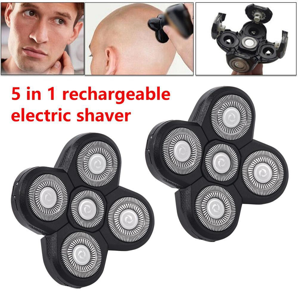 Jinyi 2 Pack Shaver Blade 5 Heads Beard Cutter Head,Head and Face Electric Razor,Shaving Bald Tool for 4D Electric Razor(Black)