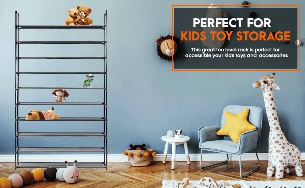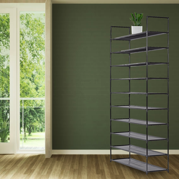 This Juggernaut Storage 10-tier shoe rack is designed to provide a great storage solution for your Collection of favorite footwear. It is constructed out of metal pipes, non-woven fabrics tiers and plastic connectors, so it can hold numerous pairs of shoes. This innovative, lightweight space saving shoe rack can be placed in a cubby closet, mudroom or busy entryway to keep shoes or accessories accessible.