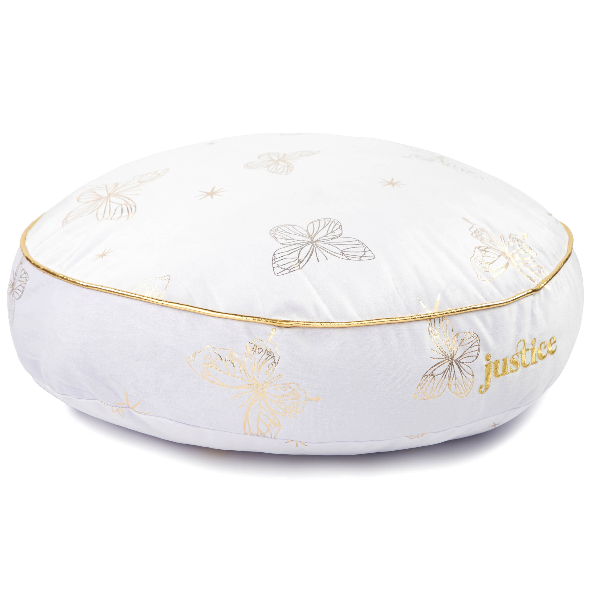 This Justice Butterfly Foil Print Floor Cushion, 23" Round, Microfiber, Purple is the perfect floor cushion for keeping cozy while lounging around the house or traveling. Made from 100% microfiber, this floor cushion measuring at 23" round is perfect for your child! This floor cushion is super soft to the touch. Easily care for this floor cushion using spot clean only. Beautiful and vibrant colors on this floor cushion pop and are perfect for anyone who loves Justice! This floor cushion is a great addition to any living space.