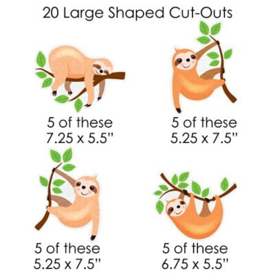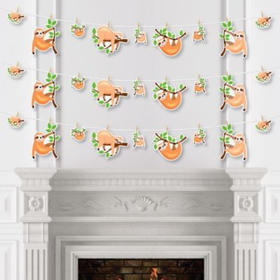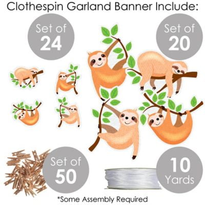Let’s Hang – Sloth – Baby Shower or Birthday Party DIY Decorations – Clothespin Garland Banner – 44 Pieces