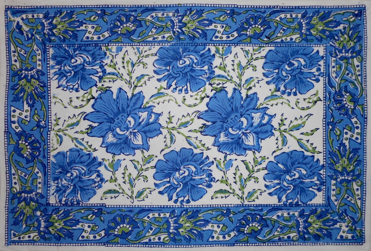 Lotus Flower Block Print Cotton Table Placemat 20′ x 14′ Blue