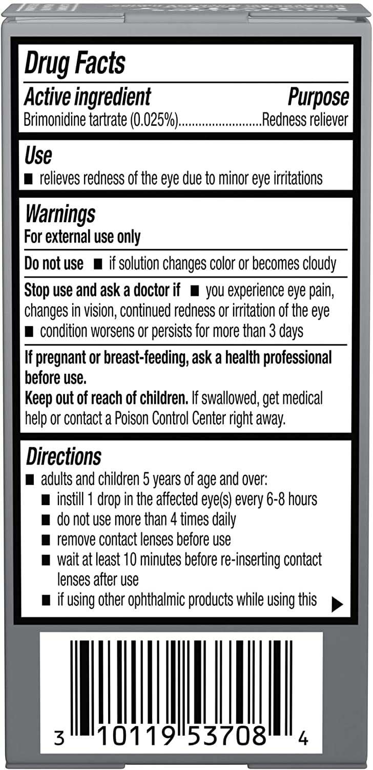 Get your eyes whiter and clearer with the Lumify Redness Reliever Eye Drops, 0.08 fl oz Sterile, 2.5mL (2 Pack). It starts working to reduce redness in 1 minute and lasts up to 8 hours. These Lumify redness reliever eye drops help your eyes appear whiter and brighter. It will help reveal your eyes’ natural radiance. These Lumify drops have a unique formulation that does not contain any bleach or dyes. It contains 0.08 fl oz of sterile brimonidine tartrate.
