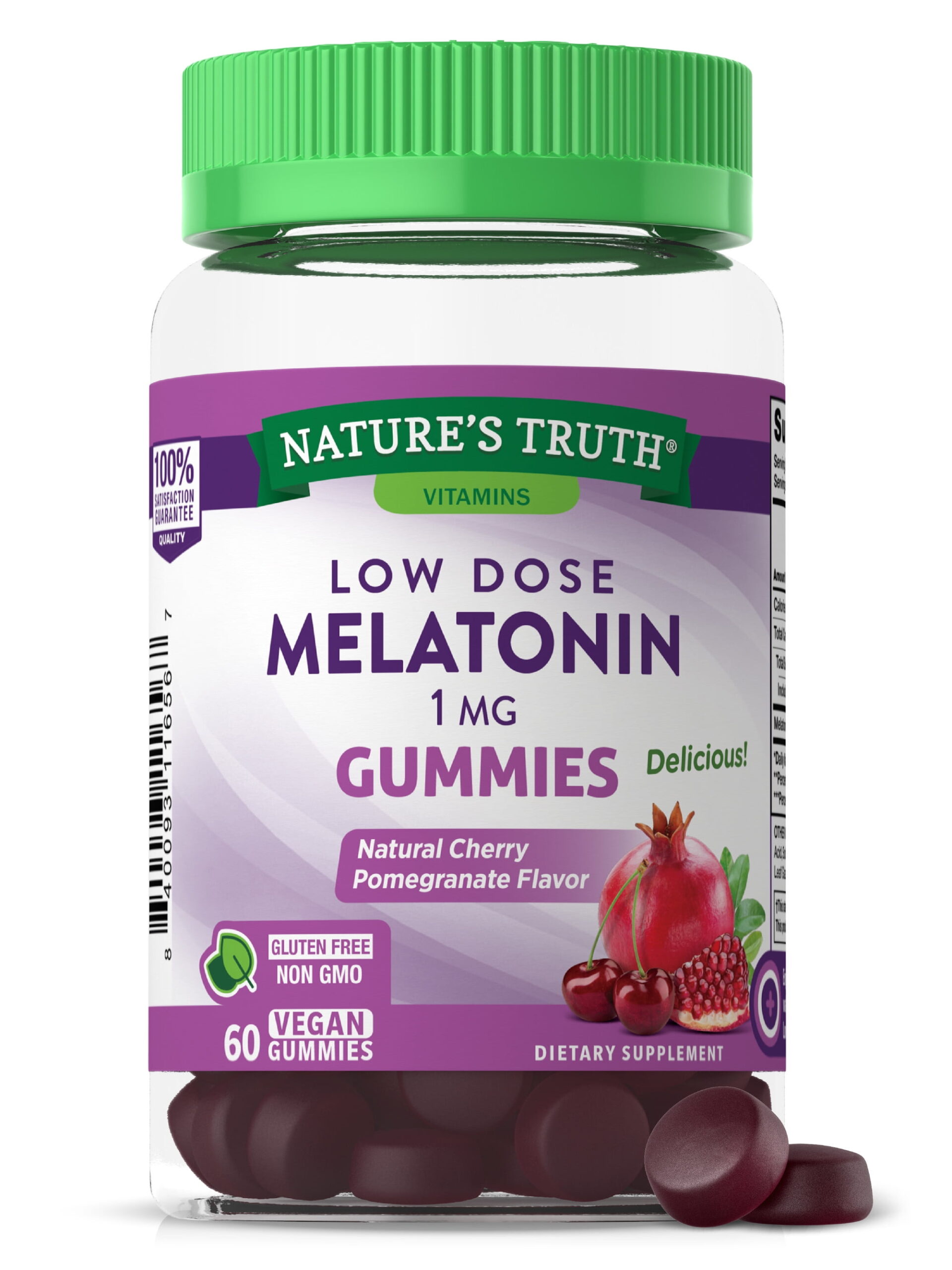 Melatonin Gummies | 1mg | 60 count | Vegan, Non-GMO & Gluten Free | Cherry Pomegranate Flavor | by Natures Truth