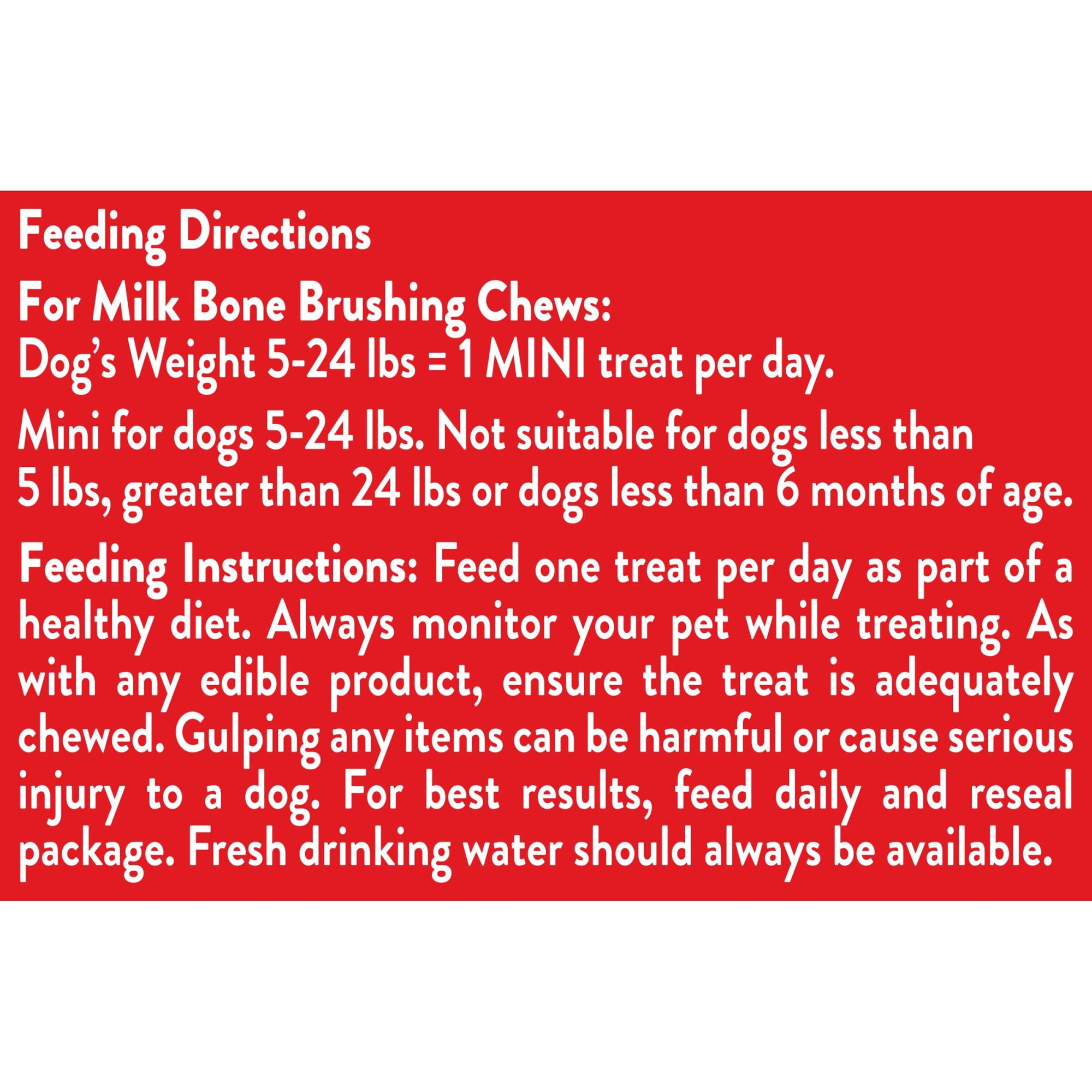 Bad breath can keep you and your dog from the closeness you’ve always enjoyed. Now you can help keep your canine friend’s breath fresh with Milk-Bone Brushing Chews Daily Dental Treats. These chews feature unique nubs and ridges that are designed to clean like bristles on a toothbrush*, helping control tartar and plaque buildup through scrubbing action. Made with no artificial flavors and sealed for freshness, these chews have an irresistible taste your dog will love. They are fortified with 12 essential vitamins and minerals–including calcium to help support strong bones and teeth–and have no artificial flavors. *When fed daily Milk-Bone Brushing Chews are as effective as brushing a dog’s teeth twice a week based on the reduction of tartar build-up. The Veterinary Oral Health Council recommends daily tooth brushing for optimal effectiveness.