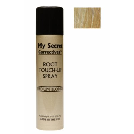 My Secret Correctives Root Touch Up Spray Provides a Quick, Easy and Economical Way to Apply Temporary Color to Your Hair and Instantly Hide Root Re Growth Available in 7 Natural Shades Multiple Shades Can Easily be Blended to Achieve A Perfect Match to Your Hair Blonde Shades Perform Great as a Highlight.My Secret Correctives Root Touch Up Spray Medium Blonde