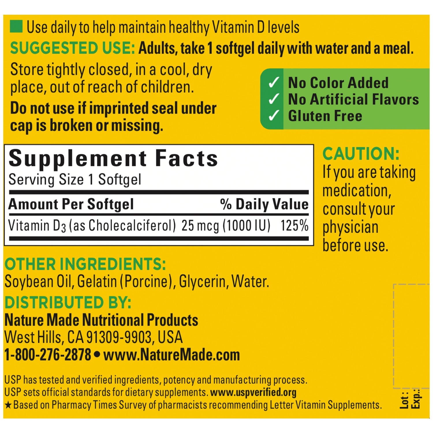 Nature Made Vitamin D3 25 mcg (1,000 IU) Softgels (650 ct.)