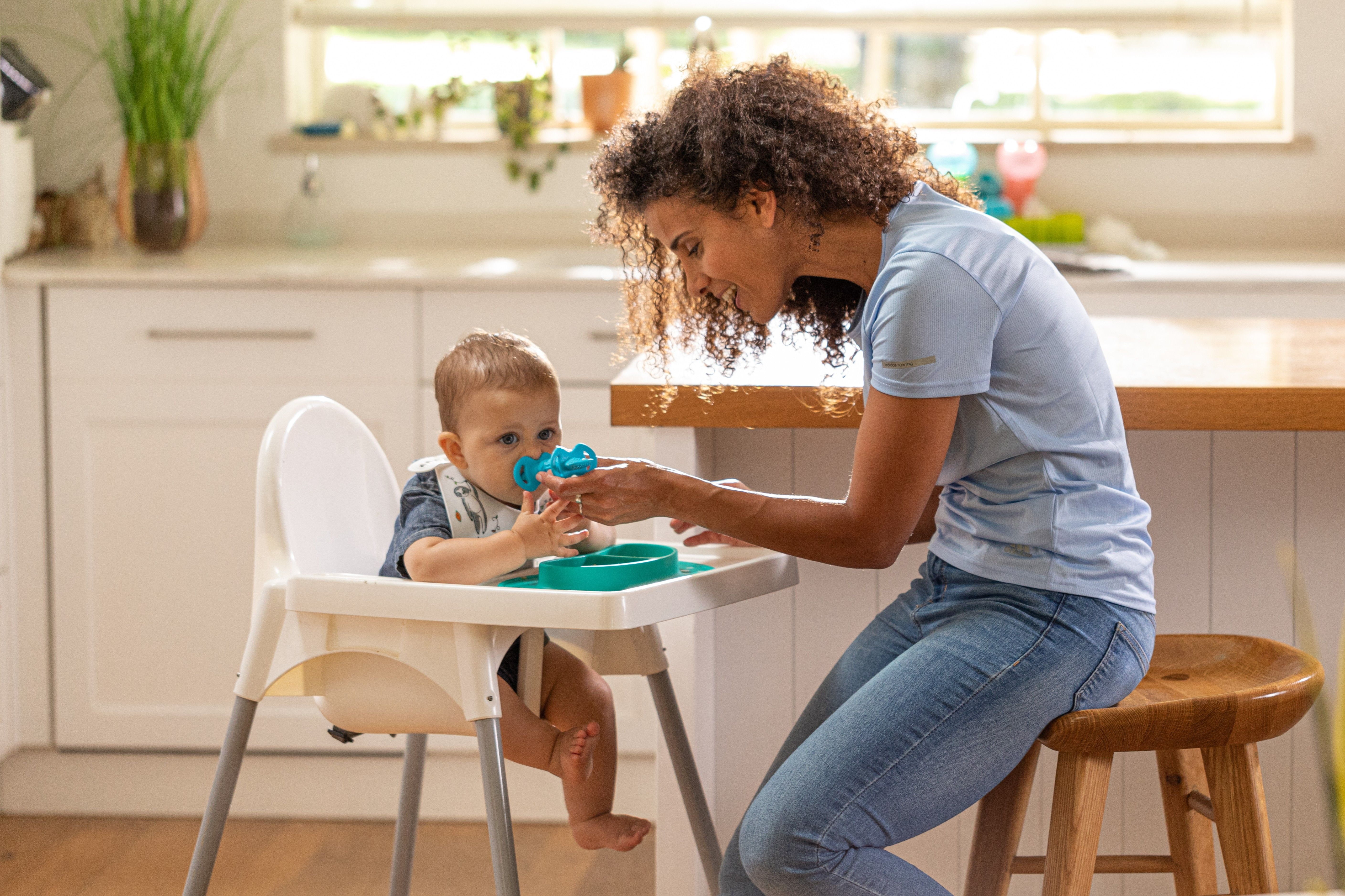 Dipeez Spoons help make self-feeding a breeze. The textured dipper is shaped to hold soft foods and purees, making it frustration-free for baby to help themselves. The silicone spoon end is perfect for baby to feed or for parents to assist. The guards on the spoon end and the dipper end of the both of the Dipeez 2 in 1 spoon prevents choking. Made with 100% soft silicone so it is easy to clean and safe for your little one.