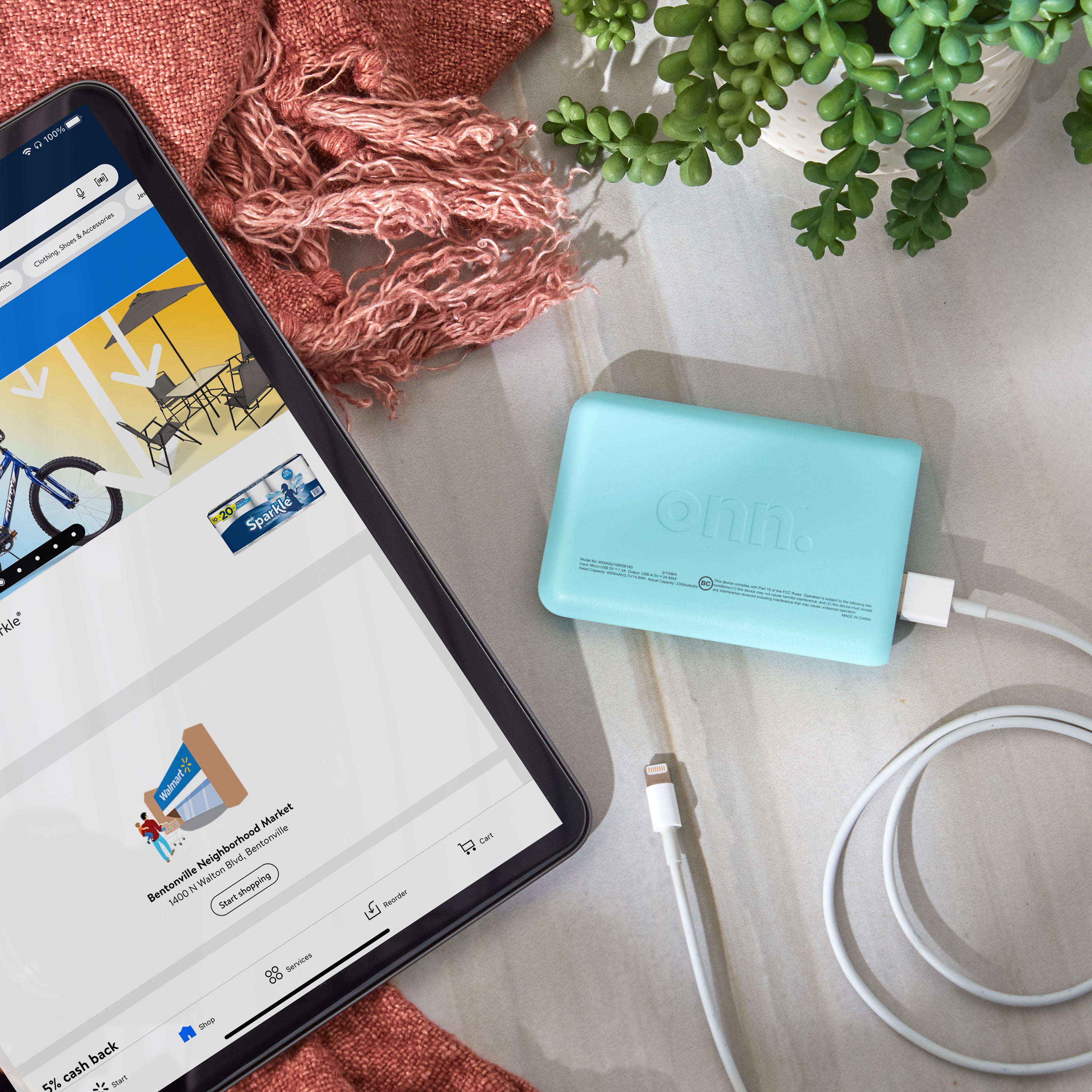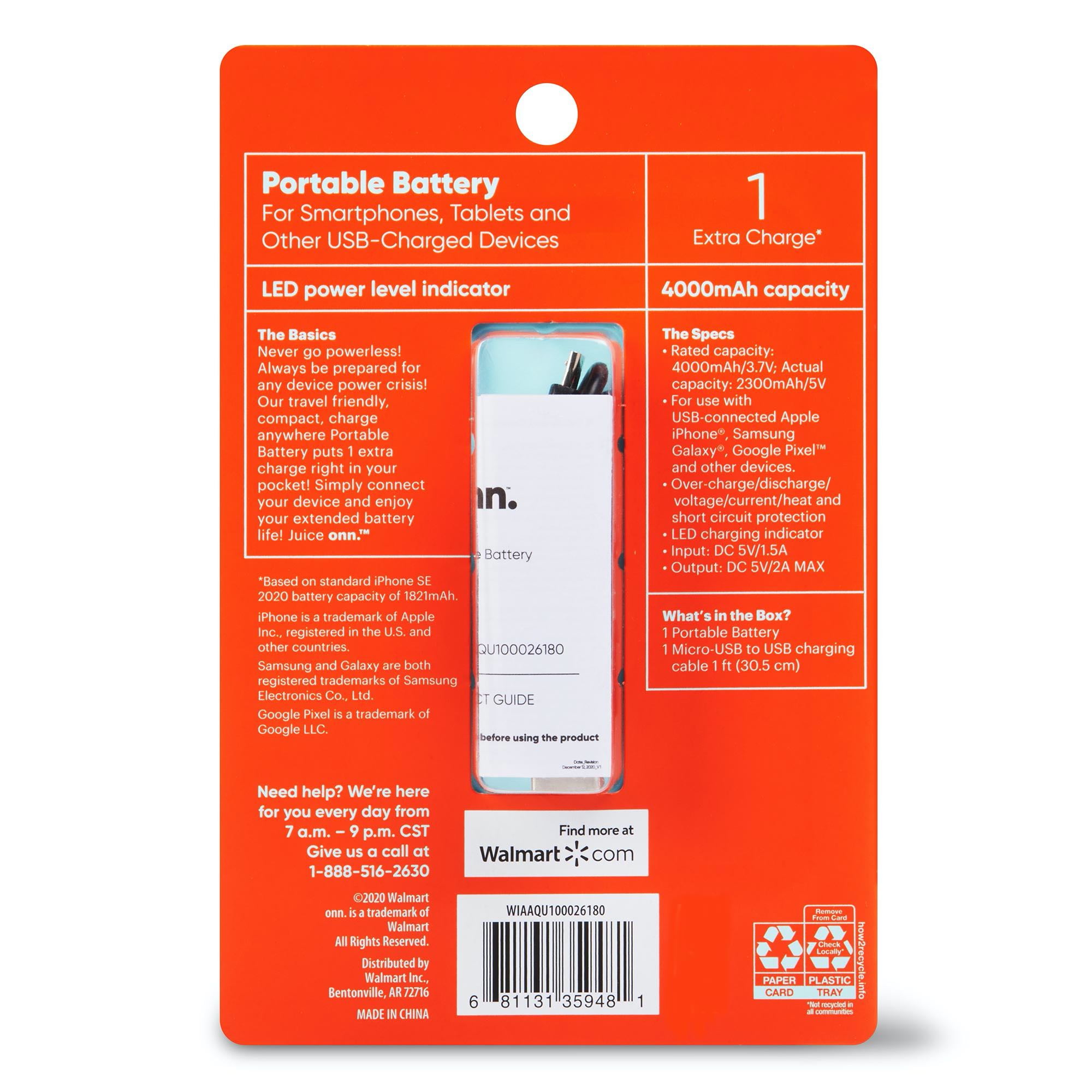 onn. Portable Battery, 4k mAh, Aqua