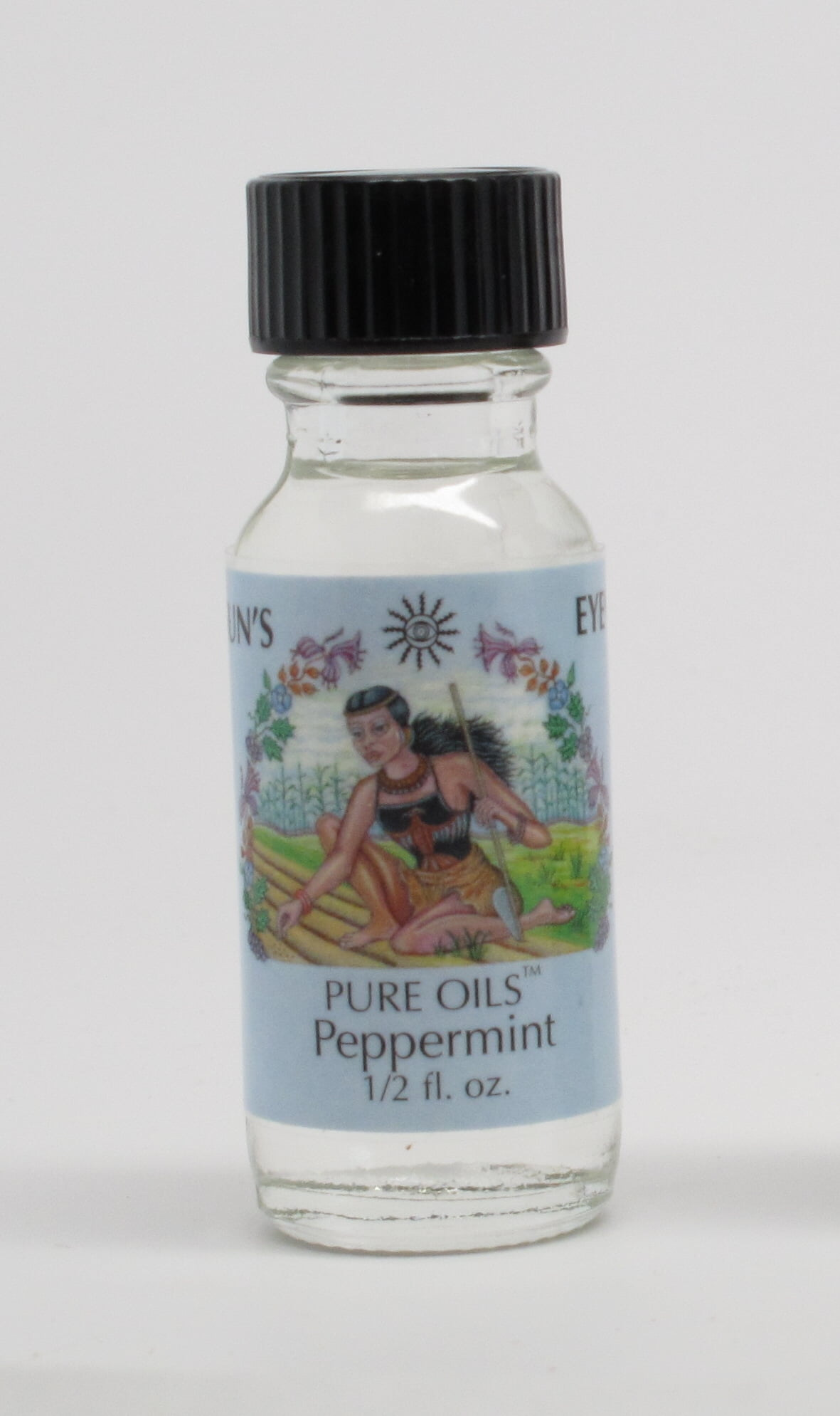 Sun’s Eye Oils are made from aromatic herbs, blossoms, leaves, spices, woods, resins and essential oils. When a carrier base is required, soybean is used. They do not use animal products or animal testing. Their musk oils are all derived from herbs. Formulary oils are hand-blended, appropriate to the lunar cycles and other planetary influences.Peppermint – Sun’s Eye Body Grade Blended Oil – ½ Ounce Bottle