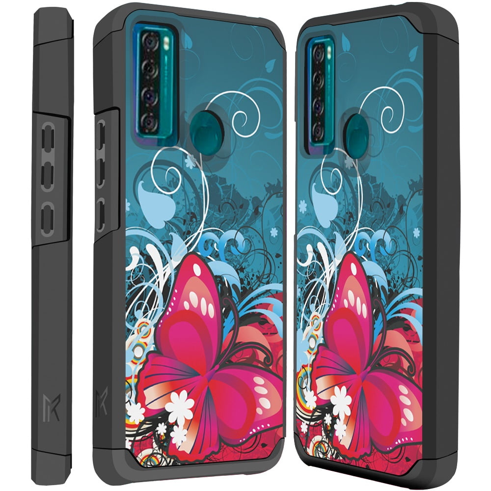 Compatible with: TCL 20XE. Multi color hybrid cover case with butterfly design- Shock Resistant. Shock Absorbing corner bumpers protect your phone from accidental drop. Dual layers combined of polycarbonate shell and TPU inner silicone which combined to offer maximum phone protection. Precise cutouts offers camera protection with a raised lip to avoid scratches. Front raised edge gives added protection for the screen of your phone. A tempered glass screen protector is include to provide protection for the phone’s screen against scratches. (Note: Tempered glass screen protector will fit 95% of the phone screen -slightly smaller than the phones actual size).