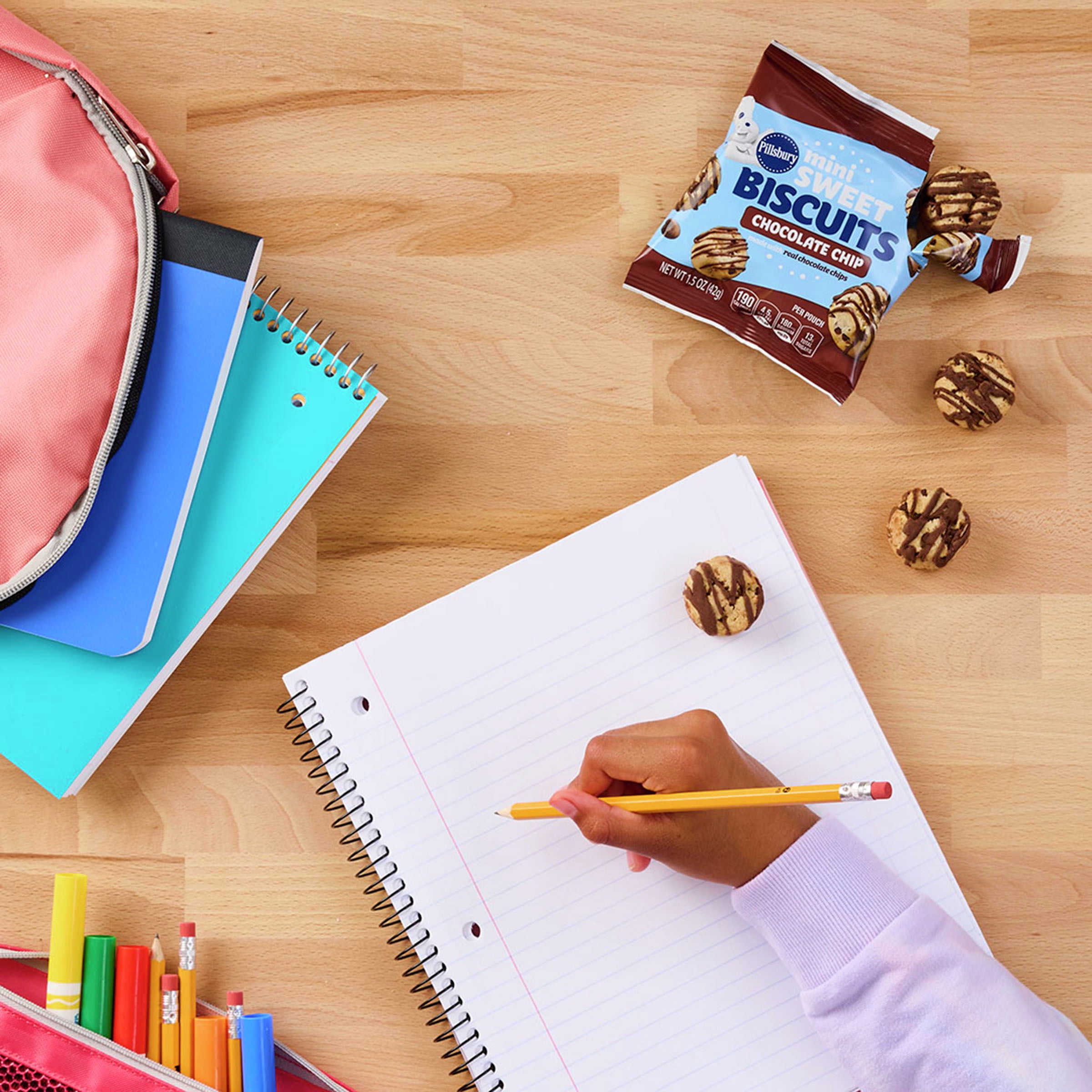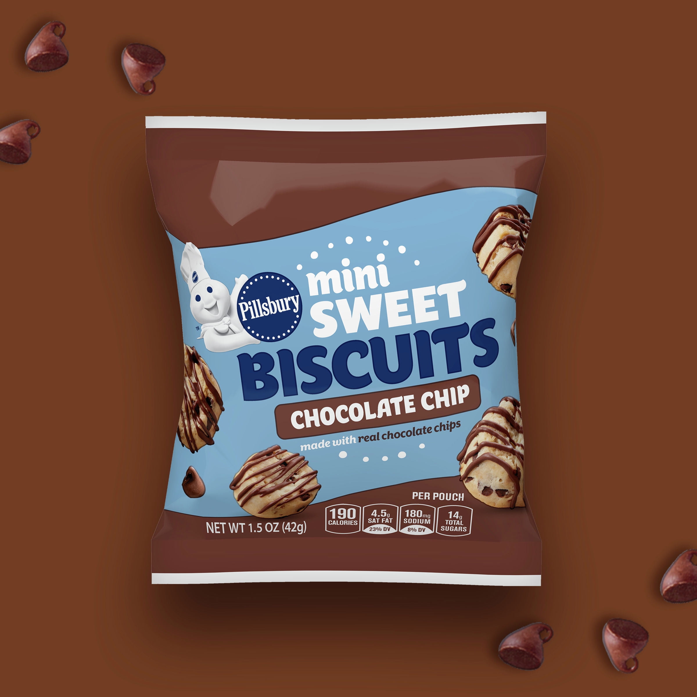 - CHOCOLATE CHIP BISCUITS: Made with real chocolate chips; All the flavor and goodness you expect from Pillsbury now bite sized and ready to eat
