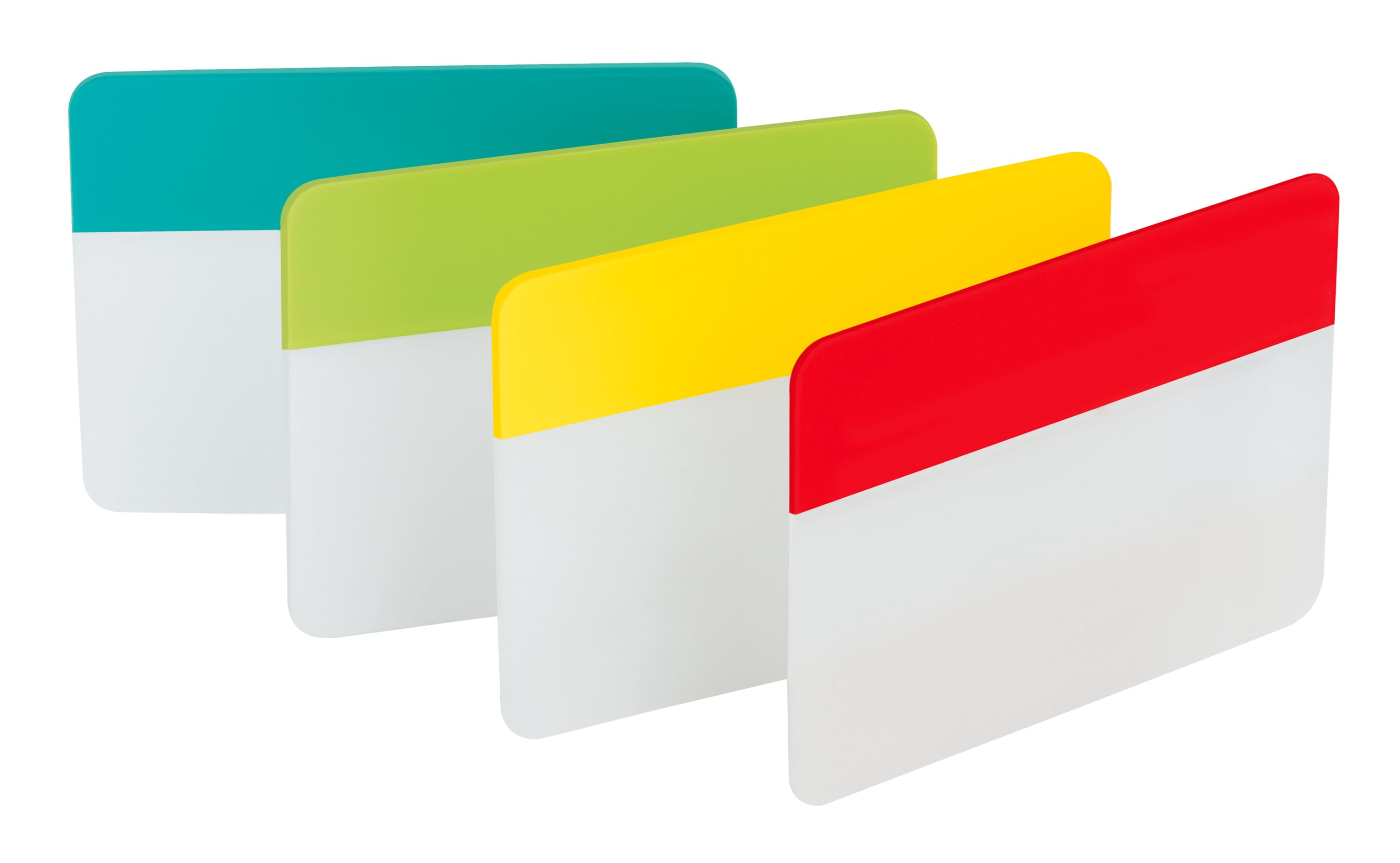 Post it Tabs in 2 inch size create necessary order by easily creating sections in planners, binders and calendars. Color bars give you flexibility to organize by color but also write on them, and reposition as needed. Tabs are durable. They are also great for planners, binders and file folders. Tabs stick securely and remove cleanly. Color code hanging files folders and according files quickly and easily. Large, easy to write on space which aids in organizing information quickly. Assorted Primary Colors. Contains 6 tabs/color, 4 colors, 24 tabs/pack.