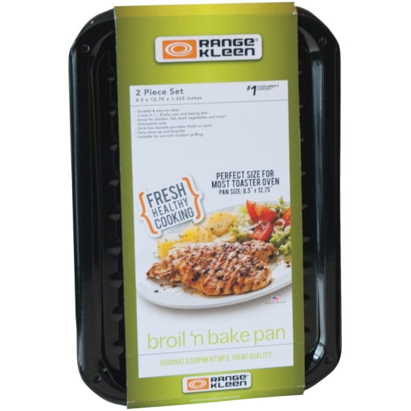 Broil healthy and tasty meats with a grill-like finish, and then use the bottom pan for baking delicious pan dishes like corn bread and brownies with these Broil ‘N Bake Porcelain Pans from Range Kleen. The high cooking temperature locks in juices and speeds up cooking time, while fat drips through the grate and is caught in the pan below. This 2-piece set is great for busy kitchens looking for fast meals and health-conscious households who want to cut fat.
