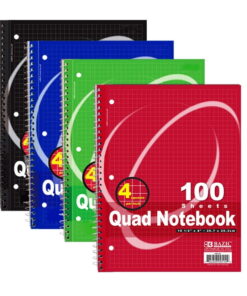 4 books / pack 100 Ct. Quad-Ruled 4-1′ Spiral Notebook Assorted color