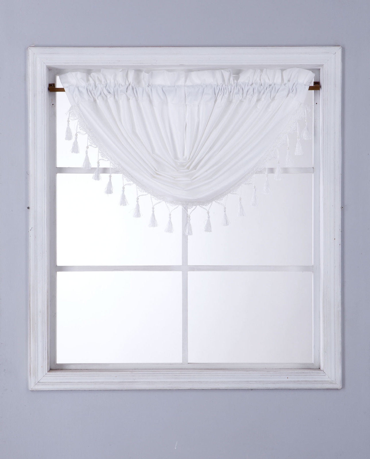 1 Piece Beautiful Cascading Style Solid Blackout Window Valance, Perfect for any Small Window Inside your Home Bathroom, Living room, Nursery, Garage, Laundry, Kitchen, 100% Polyester Machine Washable. Measurements: 48"in Wide X 38"in Length, Sold Individually