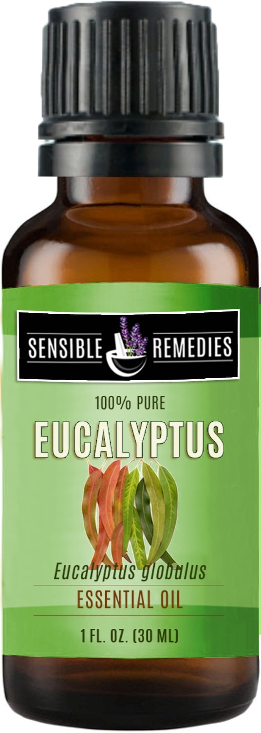 100% Pure, undiluted, therapeutic grade Eucalyptus Essential Oil in a 30 mL amber glass bottle with a euro dropper. Steam distilled from eucalyptus leaves, this high quality essential oil will work wonderfully for all of your aromatherapy needs.Oil Name: Eucalyptus; Botanical Name: Eucalyptus globulus; Color: Clear; Method of extraction: Steam Distilled; Consistency: Thin; Aroma Strength: Strong; Aroma description: Fresh, medicinal, woody, and earthy.; For external use only; Bottle contains 1 fl oz of Sensible Remedies essential oil