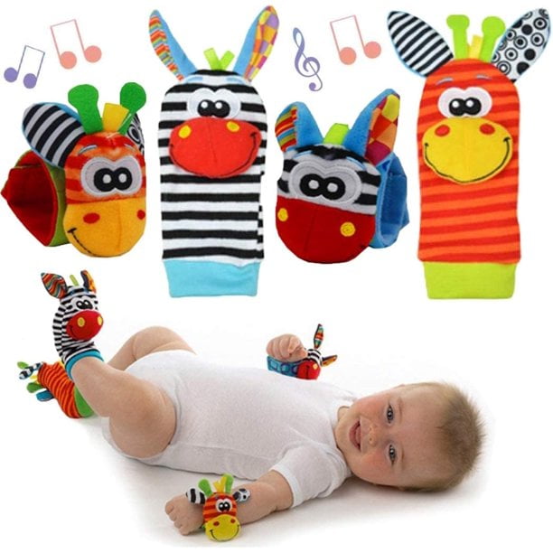 SHELLTON Baby Wrist Rattle Baby Socks Rattle, Baby Finder Animal Toys Set Soft Animal Toy (4 Pack) – Hand and Foot Rattles Suitable for 0-3, 3-6, 6-12 Months Babies