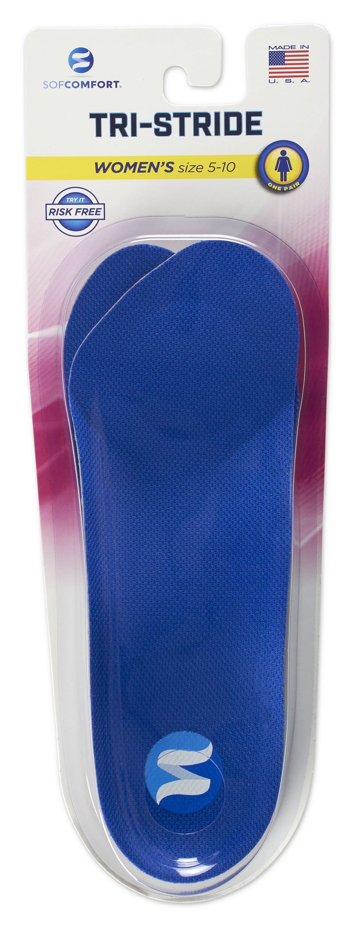 The SofComfort Women’s Tri-Stride Insole provides targeted cushioning in the heel and arch. It features an arch zone for added support to keep your foot in line while helping to increase comfort. Slip the insole into your favorite pair of shoes to immediately increase comfort for all-day wear. With a full forefoot and heel cushioning, the SofComfort Women’s Tri-Stride is built to enhance comfort and help absorb shock. Wear this insole with casual shoes, boots, sneakers, and dress shoes for all day comfort. Built as one-size-fits-all, simply cut the insole to fit your desired size for everyday comfort and ease, trim to fit style, Women’s 5-10.
