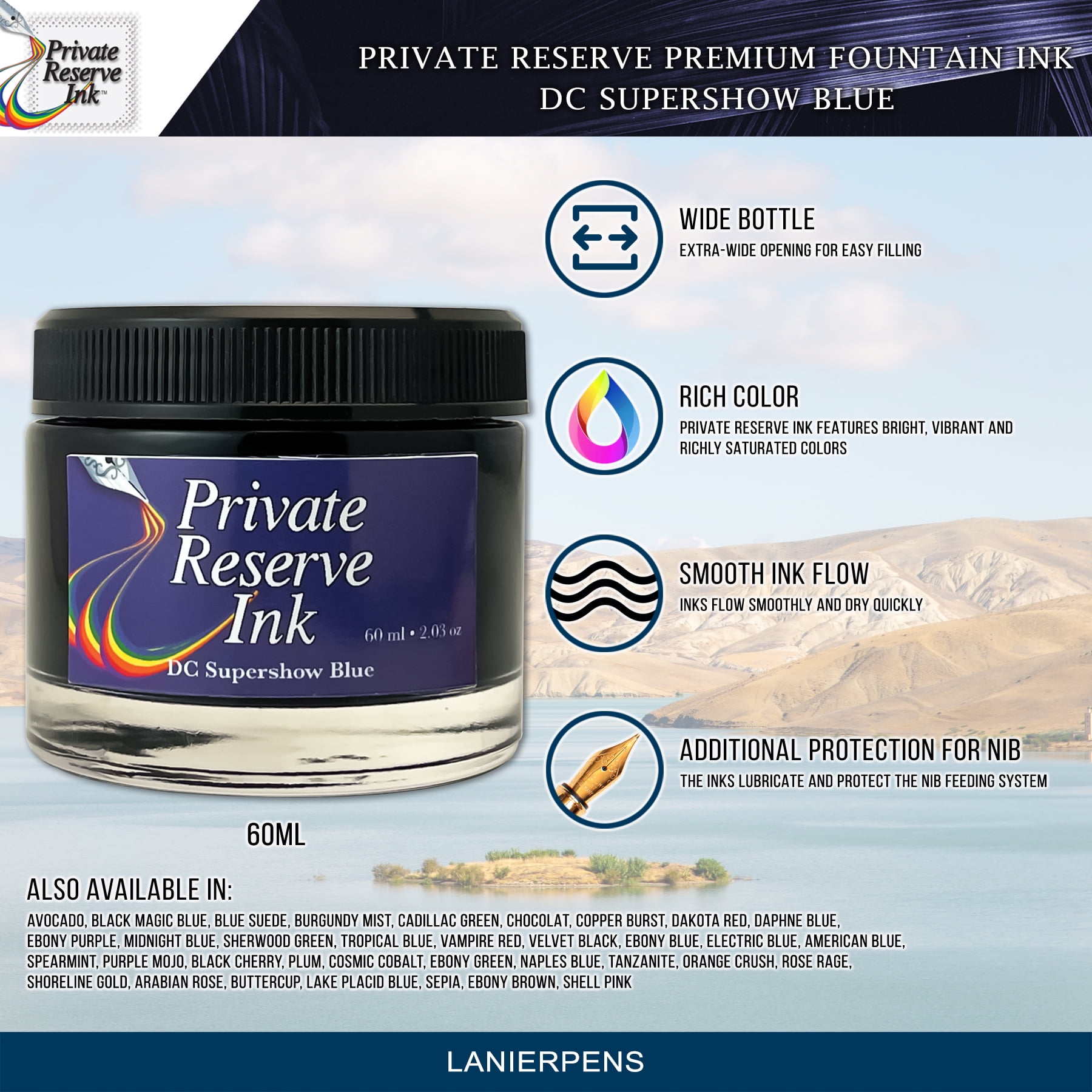 Private Reserve Ink, 60ml Fountain Pen Ink Bottle – Electric DC Blue (PR17017)