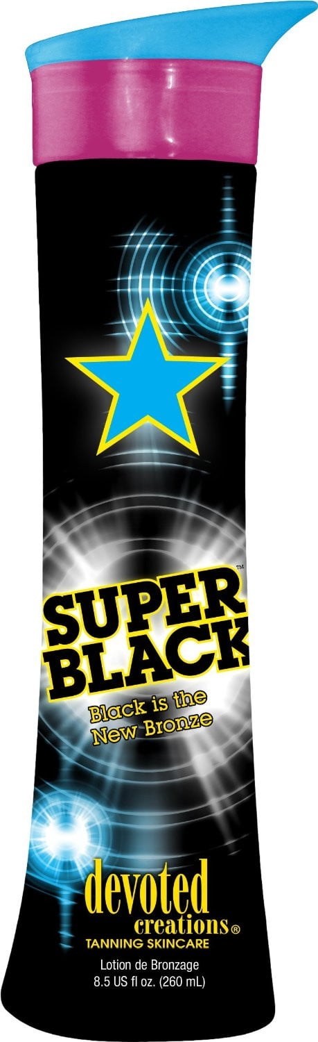 Super Black XXX Anti-Aging Bronzing – Sunless DealsCoconut Juice-Based XXX Anti-Aging DHABased BronzerSUPER BLACK is an intense DHA bronzercreated with natural and cosmetic bronzers for immediate and delayed dark bronzing results. It is also blended with camu camu berries to help slow down the aging process. Sea weed and bees wax are utilized to help draw toxins from the body and work to condition the skin. You will notice soft, smooth skin, an instant, immediate color as well as a dark long-lasting tan and a fabulous Sparkling Berry Punch fragrance. Camu Camu Berries – Compliments natural tissue growth, repair & collagen formation. Sea Weed – Draws toxins out of the body. Bees Wax – Contains skin conditioning and healing properties. Fragrance: Sparkling Berry PunchProduct Actions: Tan Enhancer, Cosmetic BronzerGet SUPERBLACK today with Devoted Creations.