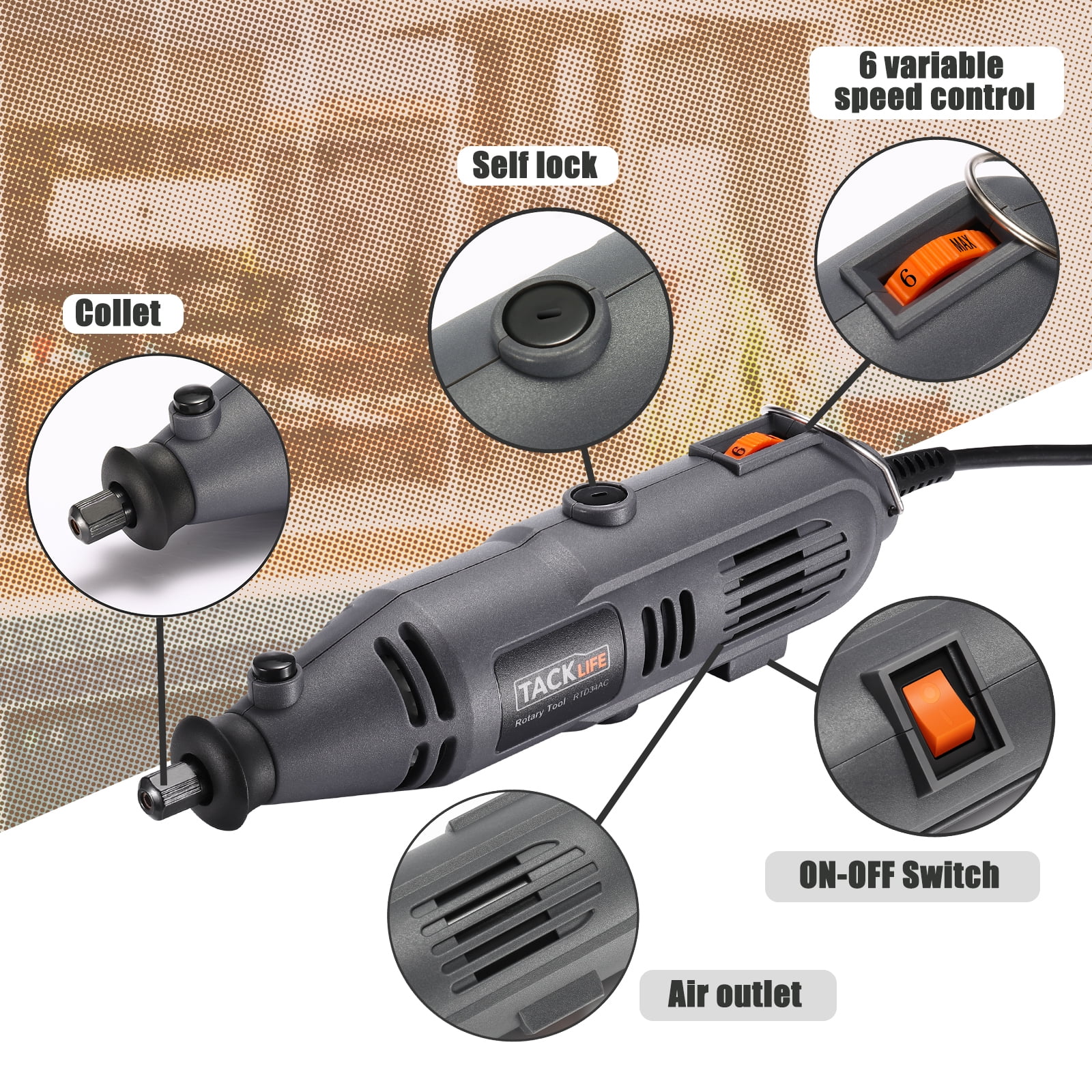 - 6 ADJUSTABLE ROTATION SPEED – The 135W motor provides powerful power for cutting, grinding, engraving, drilling, cleaning/polishing, etc; Speed from 10,000 rpm to 3,2000 rpm lets you set and adjust speed flexibly according to the work contents and the type of materials being used