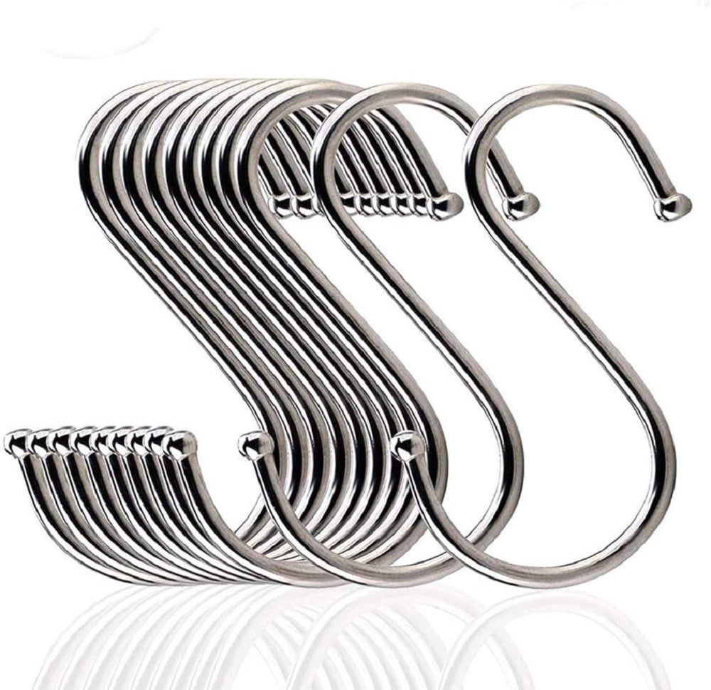 Torubia Heavy Duty S Hooks Black Steel S Shaped Hooks for Hanging Pans Pots Plants Bags Towels Kitchen Hooks Hanger, 6 Pcs Silver