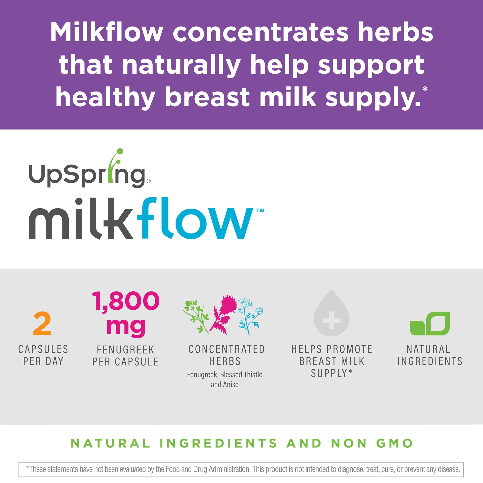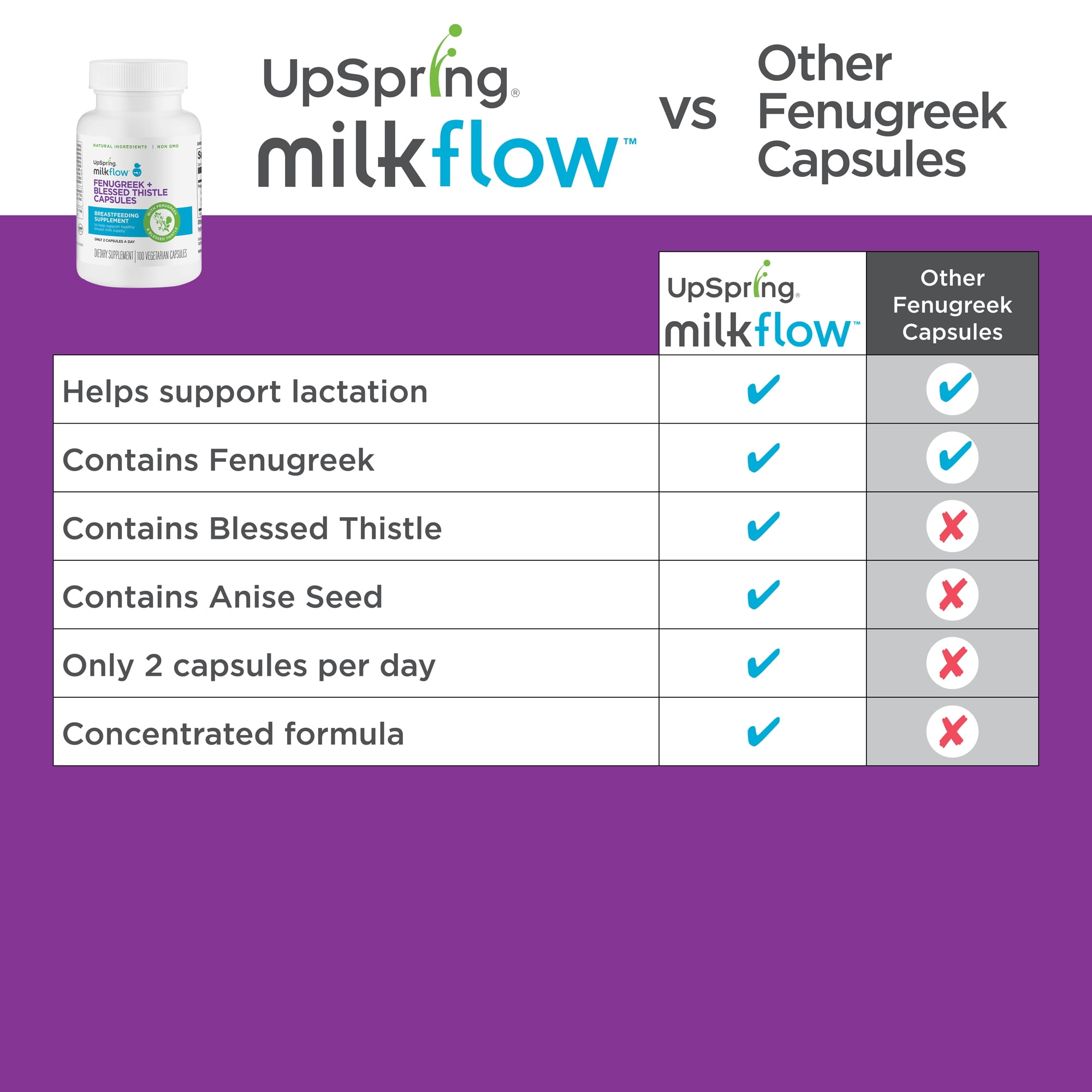 Upspring Milkflow Lactation Supplement Capsules, Fenugreek Capsules for Breastfeeding, 60 Count