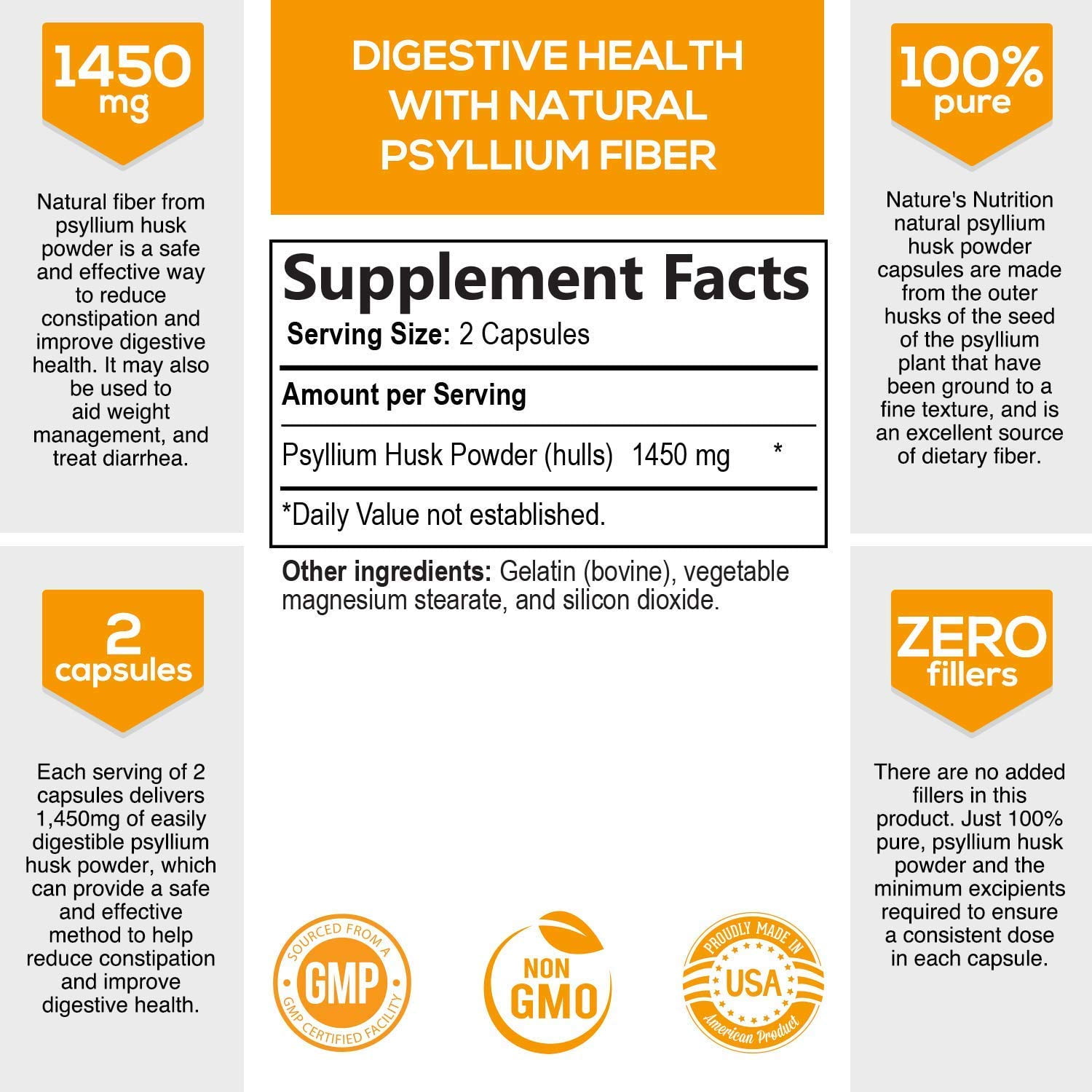 Nature’s Nutrition Psyllium Husk Capsules, 1450 mg, 120 Capsules