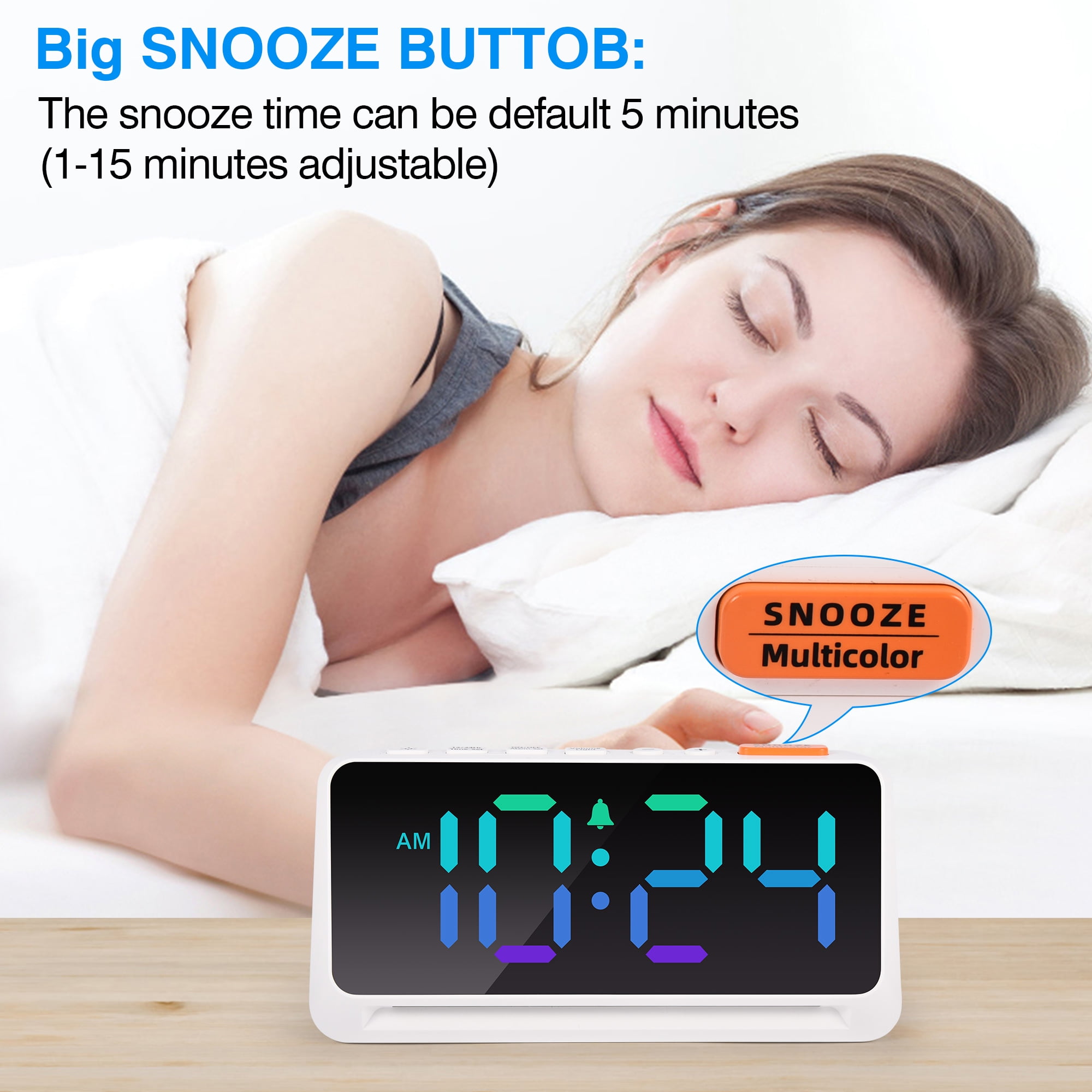 7 Colors Changing Alarm Clock Multiple Nature Sounds with Indoor Temperature Display and Snooze Function for Kids Students Heavy Sleepers