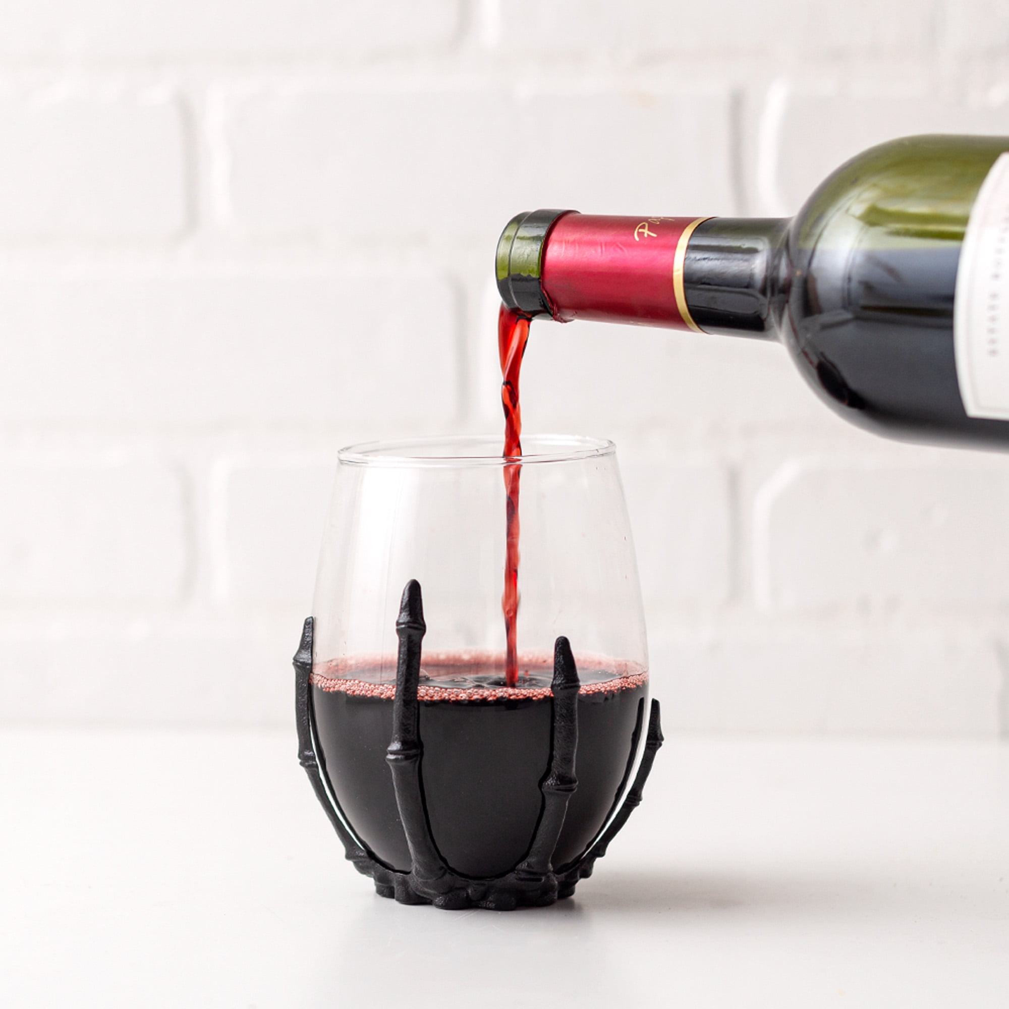 Way to Celebrate Clear Stemless Wine Glass, 10 fl oz. with Black Skeleton Hand