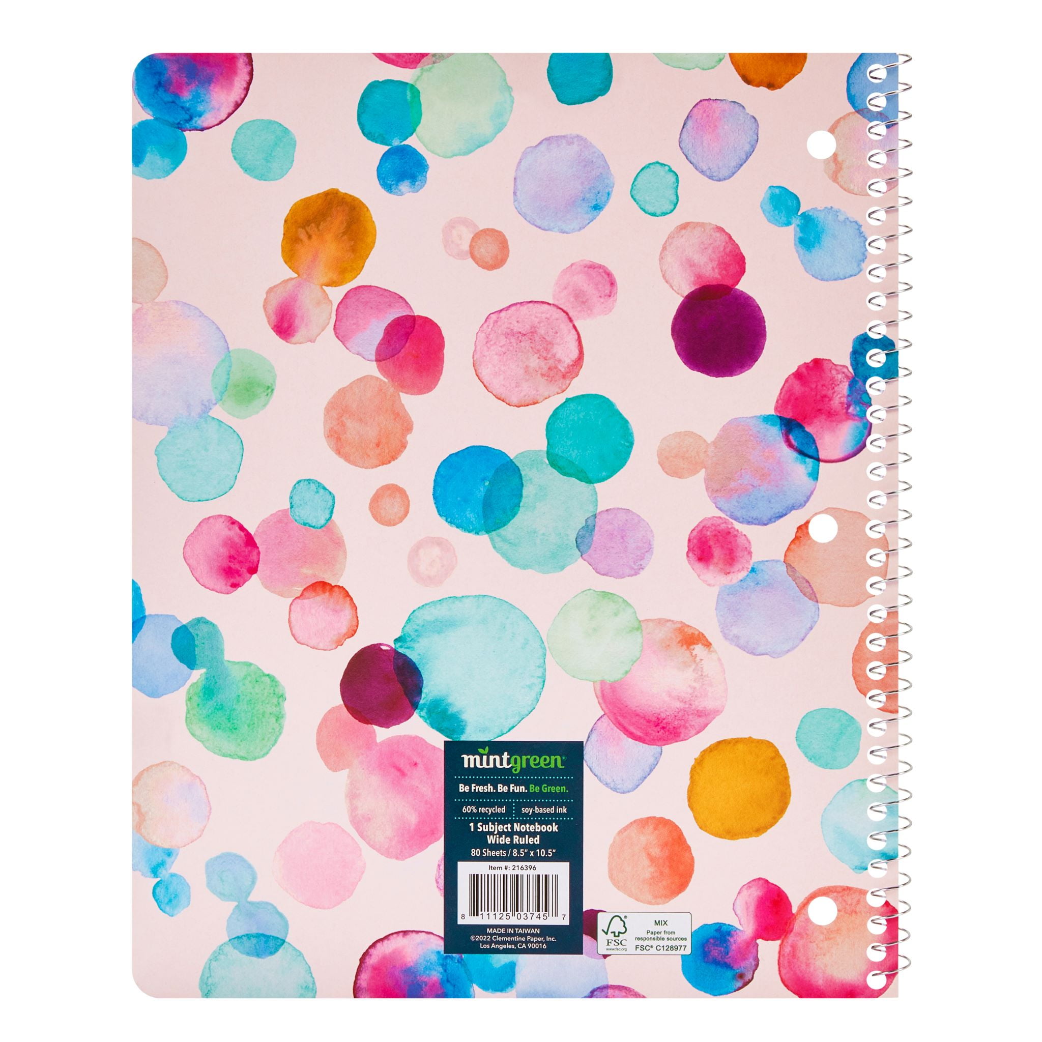 Mintgreen Spiral Notebook, Wide Ruled, 1 Subject, 80 Recycled Sheets, 8×10, Colorful Dots