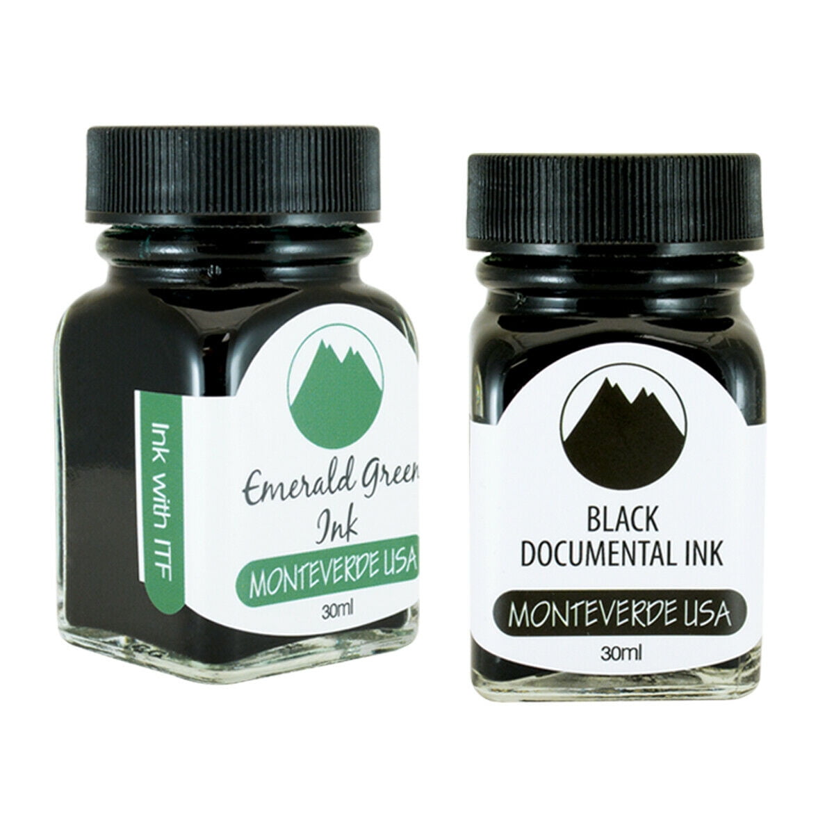 Monteverde 60ml Core Fountain Pen Ink Bottle (30ml Emerald Green Ink Bottle G309EG, 30ml Black Documental Ink Bottle G309DB)