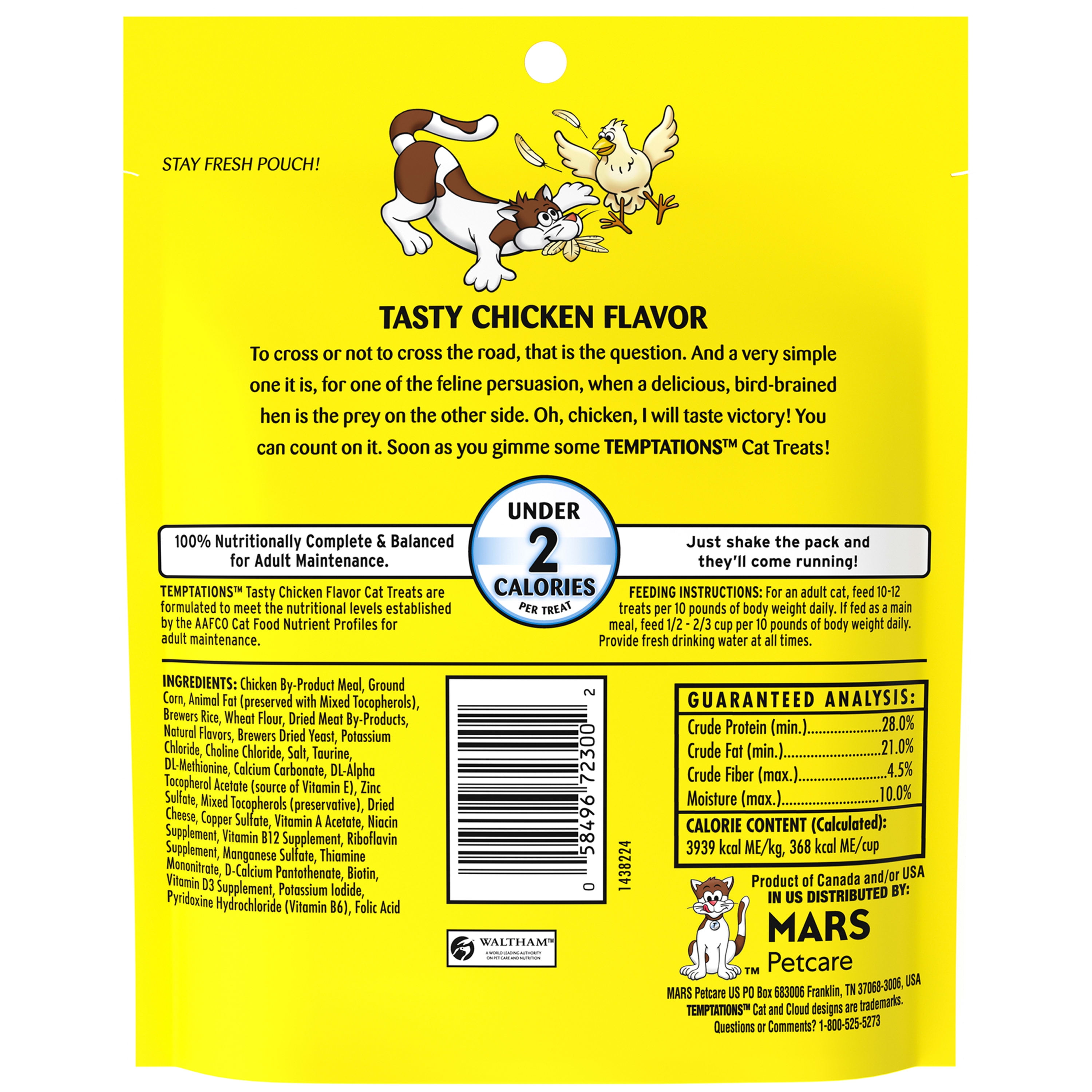 TEMPTATIONS Classic Crunchy and Soft Cat Treats Tasty Chicken Flavor, 6.3 oz. Pouch