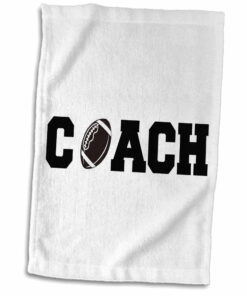 3dRose coach, black letters with football on white background – Towel, 15 by 22-inch