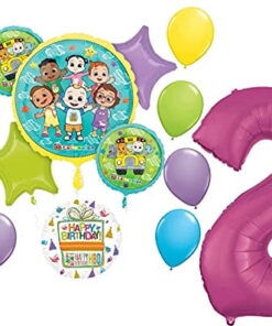 CoComelon Party Supplies 2nd Birthday 15 pc Balloon Bouquet Decorations Pink Number 2