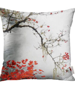 USART Red Nature Autumn Foggy Day in The Snow Mountains Brown Landscape Tree Fall Fog Pillowcase Cushion Cover 20×20 inch