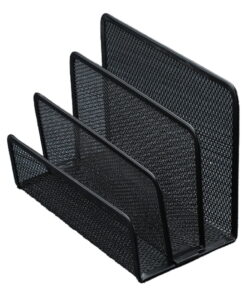 TONKBEEY Small Desk Mail Organizer Black Mesh File Letter Holder with 3 Compartments Drawer Metal Mesh Desktop Storage for Home o