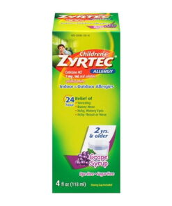 Zyrtec Childrens Allergy Syrup Grape Flavor, Sugar and Dye Free, For 2+ Years – 4 oz