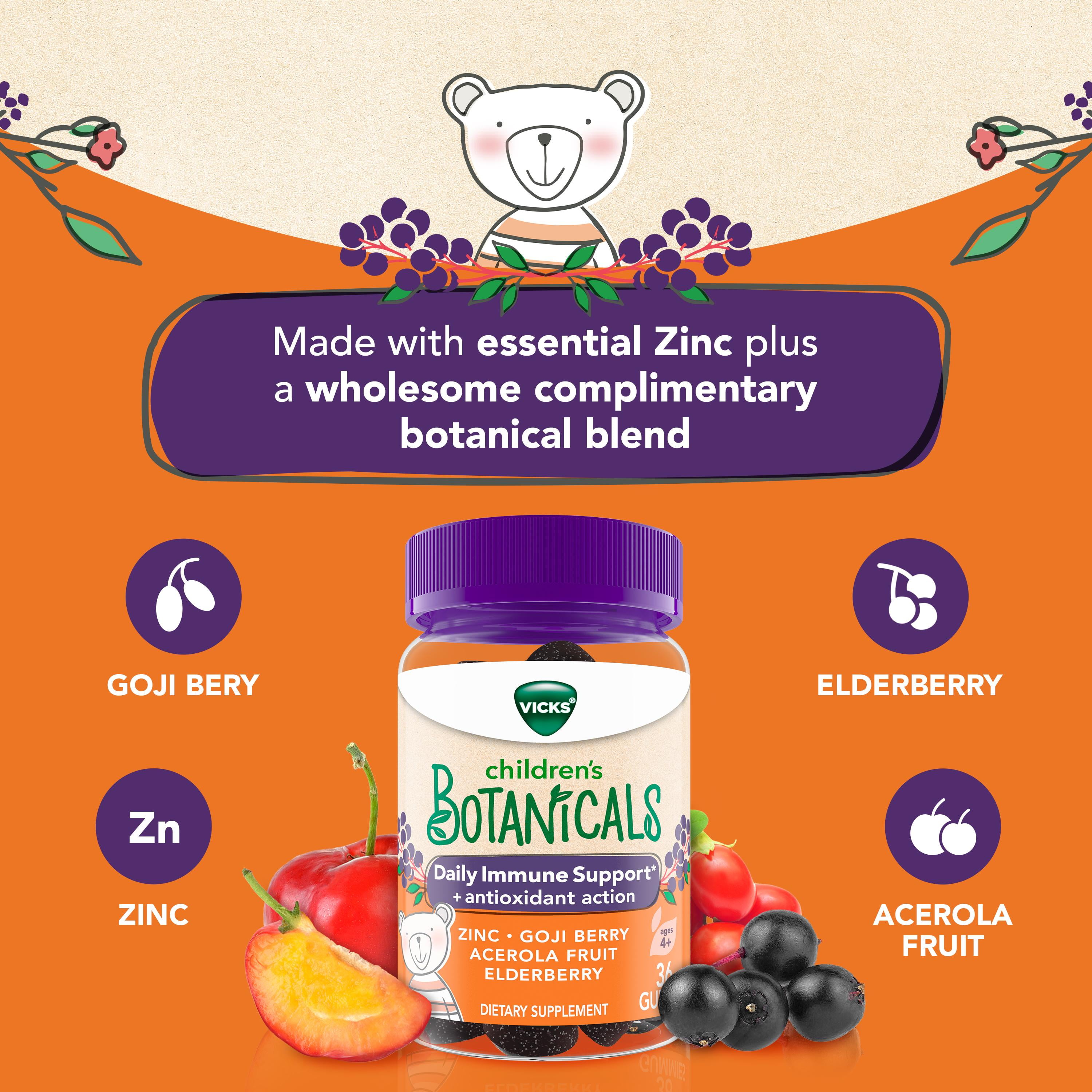 Vicks Children’s Botanicals Daily Immune Support* + Antioxidant Action, Gummies, Made with Zinc, Goji Berry, Acerola Fruit, and Elderberry, 60 Ct