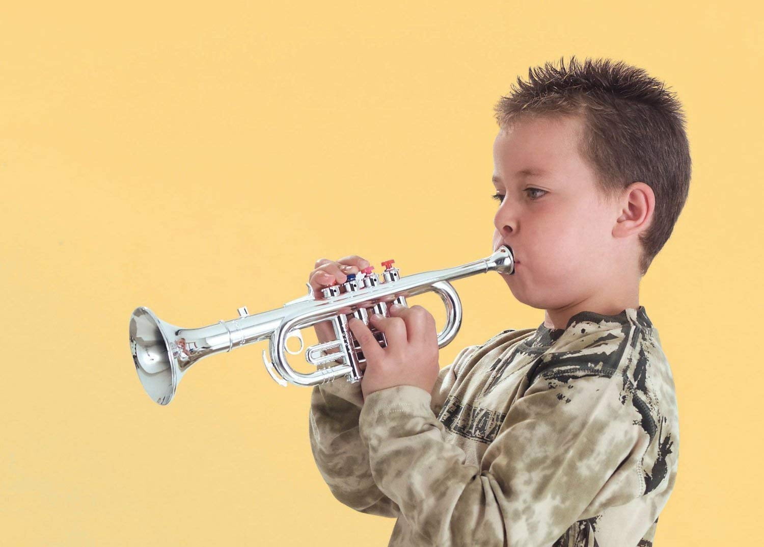 Click N’ Play Metallic Silver Kids Trumpet Horn Wind Instrument With 4 Colored Keys