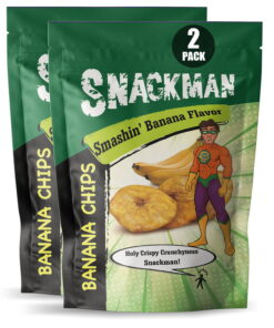 Snackman Snacks Healthy Banana Chips Dried Fruit Superhero Themed Tasty Kids treats Perfectly Delicious Crispy Original Flavored Non-Gluten 2 Pack