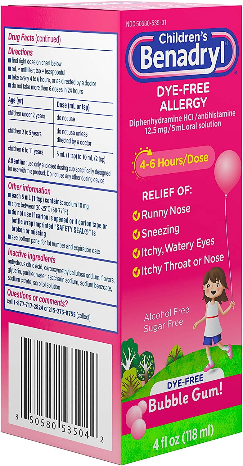 2 Pack – Children’s Dye-Free Allergy Liquid, Bubble Gum 4 oz