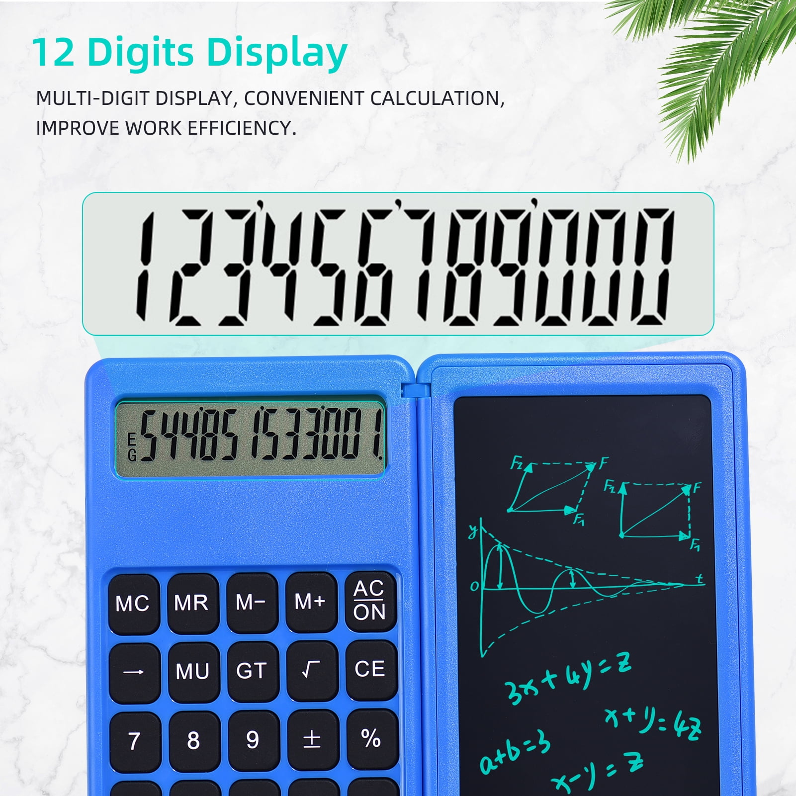 【Multi-Function】: Andoer Foldable Smart Calculator with LCD writing tablet, 12 digits display, write while calculating, convenient and practical.