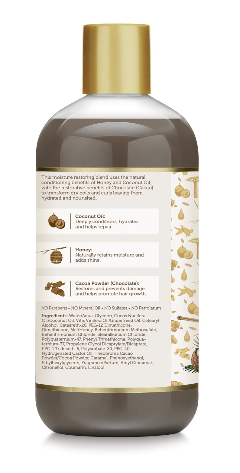 A Moisture restoring blend uses the natural conditioning benefits of Honey and Coconut Oil, with the restorative benefits of Chocolate (Cacao) to transform dry coils and curls leaving them hydrated and nourished.